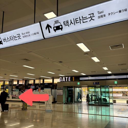 ①入国口を出て左へ進む