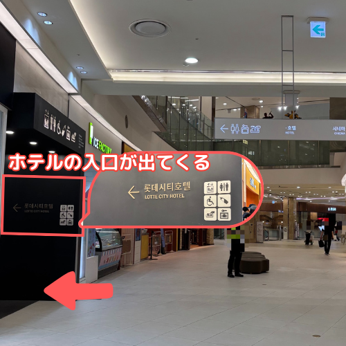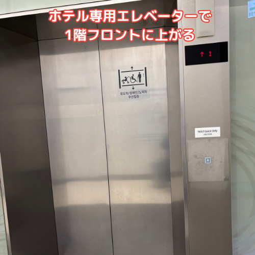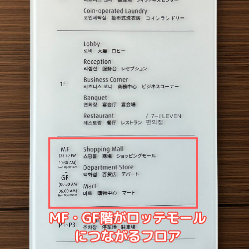 ホテルのエレベーターで、MF、GFのフロアからロッテモールに直接行くことができます。