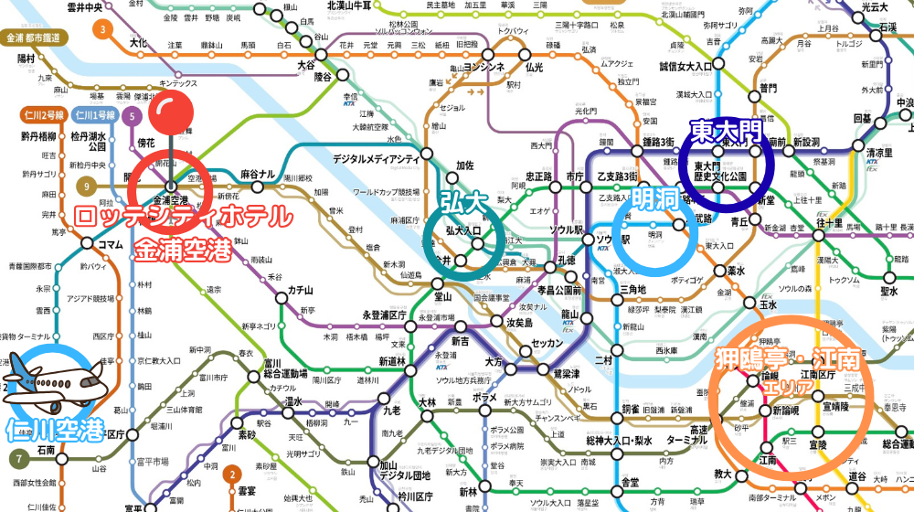 - 電車は5路線!ソウル市内、仁川方面どちらにも移動しやすい