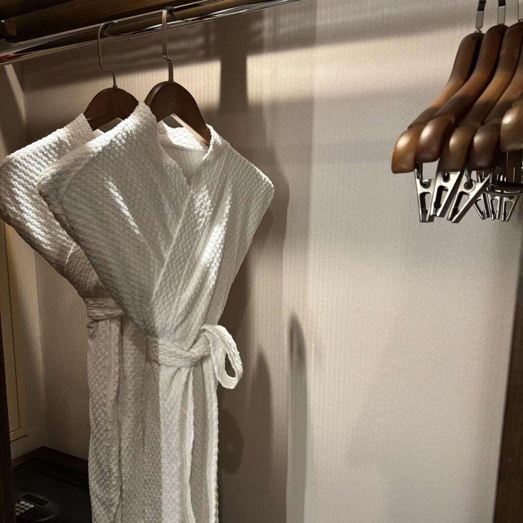 クローゼットに、バスローブ・使い捨てスリッパが準備されています。