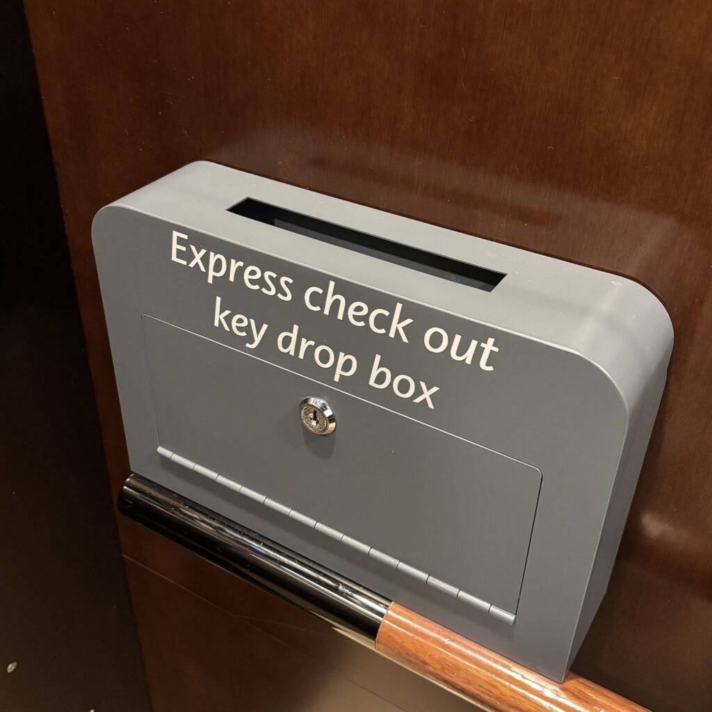 宿泊料金以外に追加精算がない人は、ルームキーをこのボックスに入れてチェックアウト完了です!